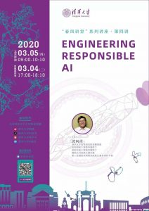 3月5日,清华大学校长邱勇将向沈向洋教授颁发聘书,同时也将由沈向洋主讲清华大学“春风讲堂”系列讲座第四讲,主讲题目为Engineering Responsible AI(负责任的人工智能工程)。