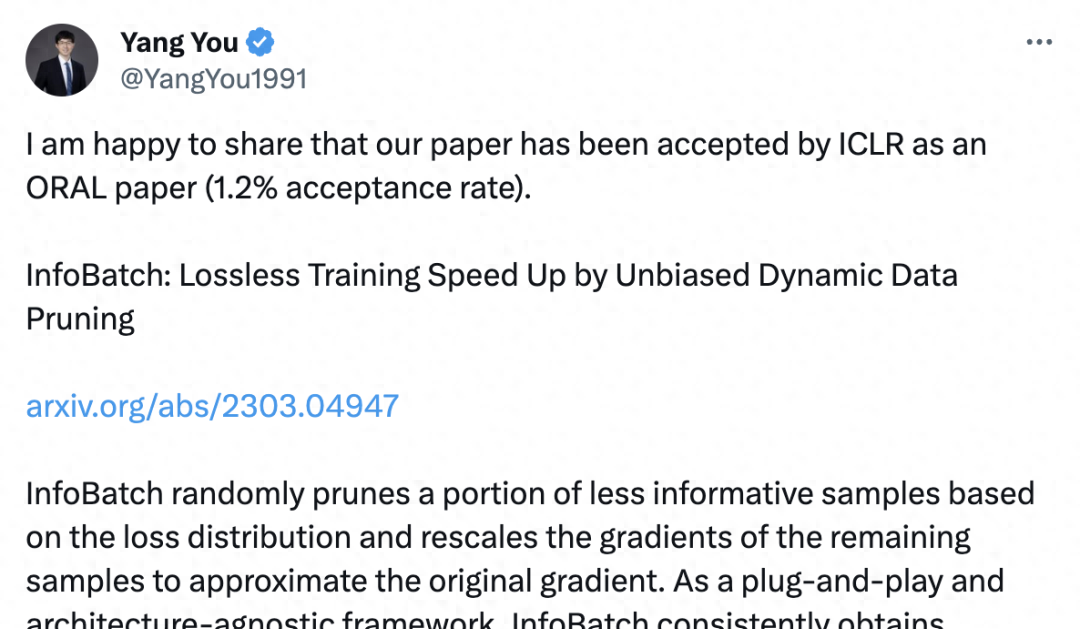 三行代码无损加速40%,尤洋团队AI训练加速器入选ICLR Oral论文