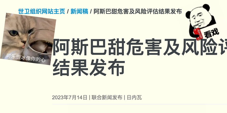 阿斯巴甜正式列入「可能致癌物」,世卫组织:不建议用于控制体重