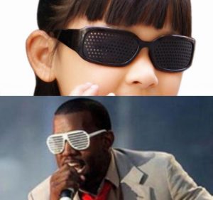 举个栗子,当我们带上八九十年代风靡一时号称可以矫正视力的小孔眼镜(事实证明并不能)、或者十多年前的潮流单品百叶窗眼镜时,虽然眼前都被各种形状的塑料结构遮挡,但事实上并不妨碍我们看清物体。这和OPPO“透视全景屏”就差不多。
