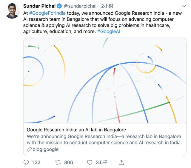 谷歌宣布建立印度研究院,劈柴哥的推特被印度裔程序员刷屏了