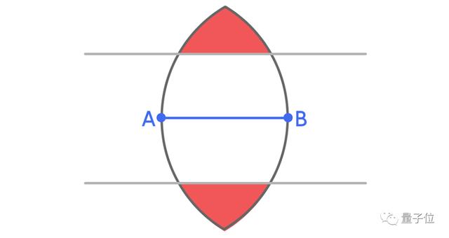 到A和B的距离不能超过1,这一条件不仅仅适用于点C,还适用于区域R中的每个点。