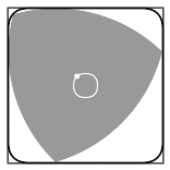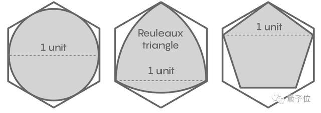 上图中间的形状是一个勒洛三角形(Reuleaux triangle),这是一个与我们上一小节提到的万有覆盖密切相关的定宽曲线。