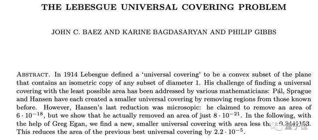 他们把最小万有覆盖面从0.8441377减少到0.8441153单位面积。