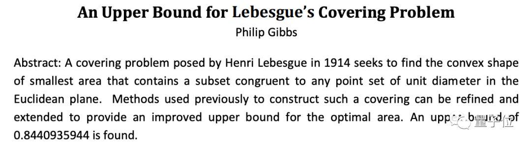 2018年10月,Gibbs独自又发布了一篇文章,再次将最小万有覆盖面积缩小。