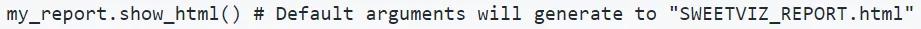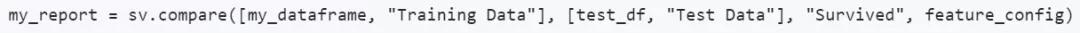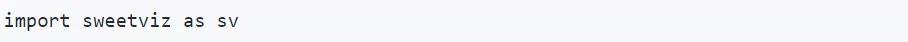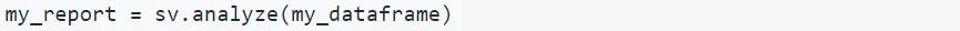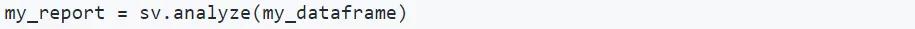 sweetviz使用的原理是,使用一行代码,生成一个数据报告的对象(其中,my_dataframe是pandas中的DataFrame,一种表格型数据结构):