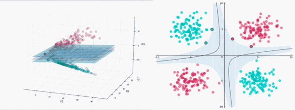 使用SVM对非线性数据进行分类,需要将数据投影到更高的维度,即通过增加低维数据的特征向量将其转换为高维数据。