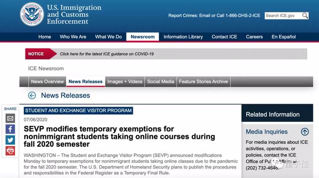 当地时间7月6日下午,美国移民和海关执法局(ICE)发布最新政策: