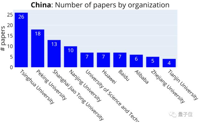 如果按照论文数量对国内各机构进行统计,此次ICML 2020中,清华依旧位居第一。