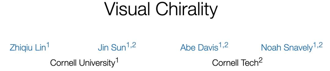 研究的题目叫做视觉手性 (Visual Chirality),并在CVPR 2020中获得了最佳论文提名。