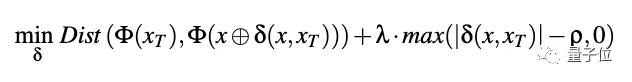 随机选取一幅 T 中的图像,为 x 计算出「隐身衣」δ(x, xT) ,并按照公式进行优化。