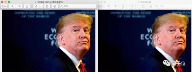 两张图片几乎没有差别,并没有变丑,川普脸上的皱褶看起来还光滑了一点。