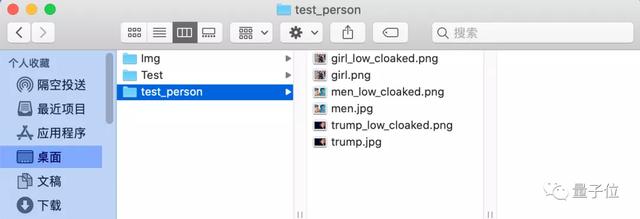 进入下载文件夹后,输入./protection -d 文件路径(文件路径是图片文件夹所在的位置,这里输入~/Desktop/test_person),运行生成图片的「隐身衣」。