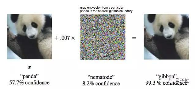 比如,在图像里加上一点噪声,熊猫就变成了长臂猿: