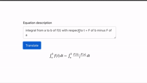 gpt.add_example(Example('x squared plus y squared plus equals z squared', 'x^2 + y^2 = z^2'))