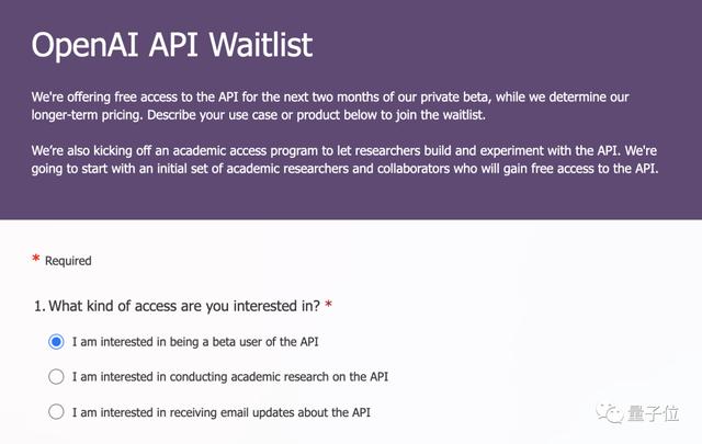如果你也对GPT-3感兴趣,不妨去OpenAI官网申请试用。填写下面这样一份表格,静静等待官方通知吧。