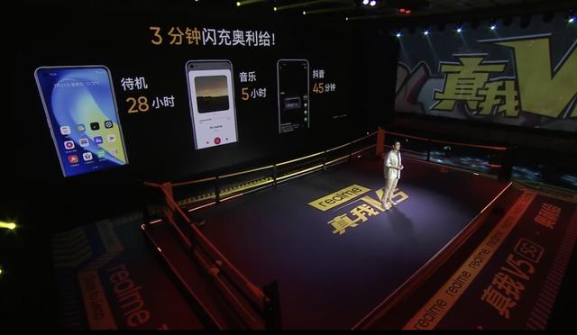 今天realme就通过线上发布会,在拳击馆一样的舞台上发布了真我 V5 手机。