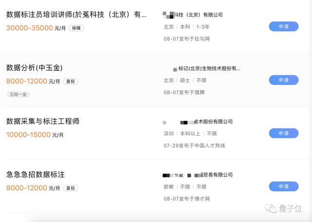 根据招聘平台信息,北京地区,数据标注师的月薪普遍在5000-8000,有数据采集技能的标注师月薪往往超过10000。而数据标注师的培训讲解岗,工资则超过2万。