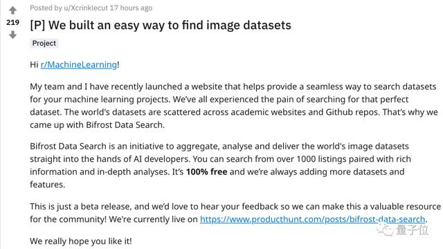 一键搜索,免费获取,直接链接到原始数据库,帮你快速找到合适的数据集。研究团队来自新加坡,Reddit上17小时热度200+。
