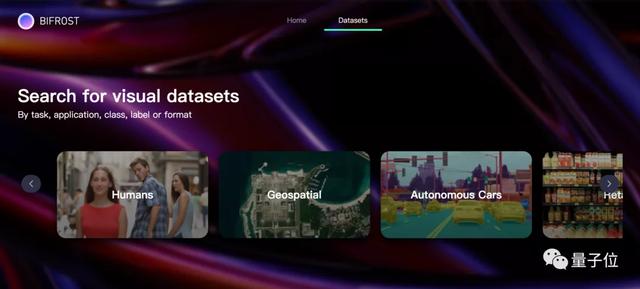 这个项目名叫BIFROST,一个数据集搜索工具,里面共有1899个图像数据集,还专门设置分类,比如Humans、Geospatial、Autonomous Cars等。