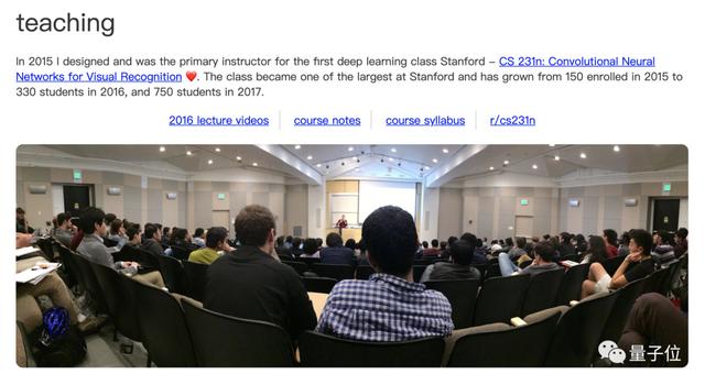 而且斯坦福大学的著名计算机课程CS231n就是他和李飞飞一起设计的,Karpathy不仅是该课程的助教,也是主讲人之一。