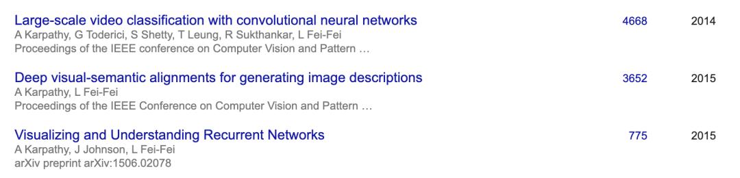 Karpathy在2011-2015年期间进入斯坦福大学攻读博士学位,他的导师就是李飞飞。读博期间,他发表的多篇论文都是CV领域的高引文章,还在Google、DeepMind两家公司实习过。