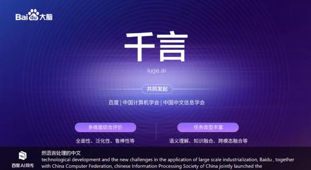 在峰会上,百度联合中国计算机学会、中国中文信息学会共同发布「千言」数据共建计划。