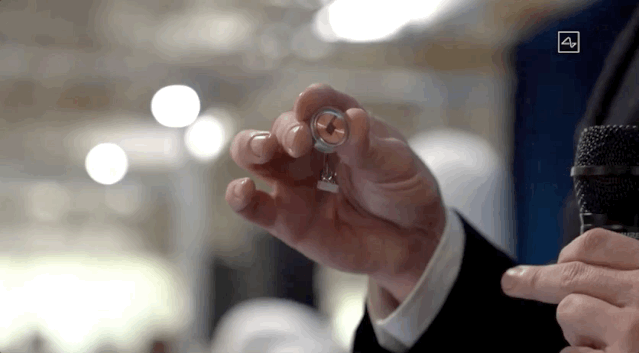 现在的它,不再有以往在耳边的信号接收盒,只是一个犹如「硬币」形状的圆盘,尺寸为23mm x 8mm。