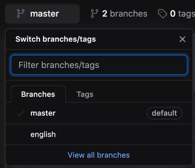 于是,小浩做了一些努力,在自己的项目中创建了英文分支,也对其中的一些内容进行了英文翻译。