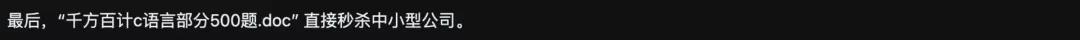 例如,心仪的公司是中小型公司的话,那就考虑一下这个「千方百计C语言部分500题」吧。