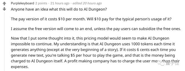 例如,有网友表示,这会对基于OpenAI做的AI Dungeon(一款免费文字冒险游戏)产生巨大的影响。