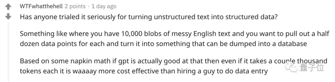 从数学角度来看,如果GPT-3擅长于从混乱的文本中提取出可以存储到数据库中的数据点,那么即使分析10000个词要花费几美元,也比雇一个人便宜多了。