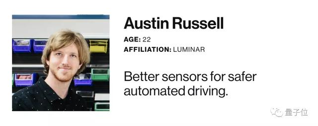 在此之后,22岁那年,奥斯汀·罗素就凭借Luminar在激光雷达领域的突破,成为估值超10亿的独角兽公司CEO,还被MIT科技评论评为「35岁以下科技创新35人」。