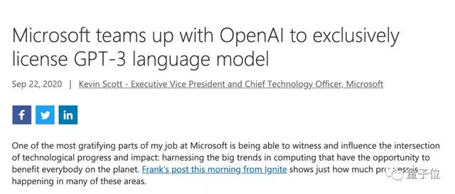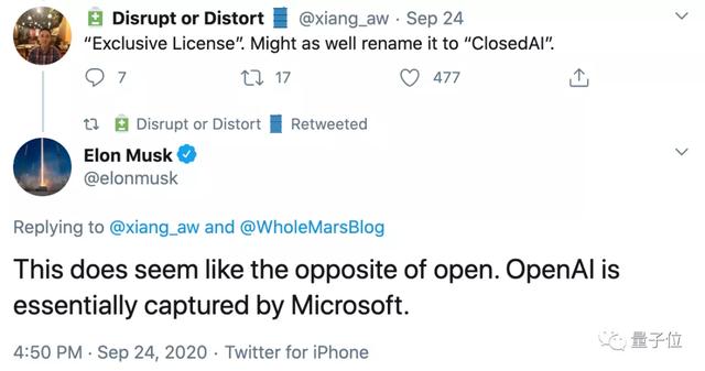 微软获OpenAI GPT-3独家授权,马斯克不高兴了。