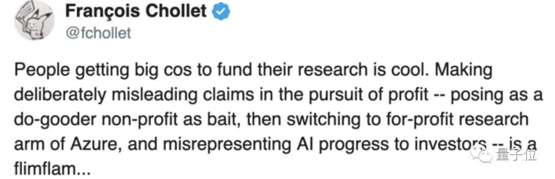 相比之下,Keras作者François Chollet曾直言,喊着非营利的旗号,却投向营利机构的怀抱,就是在鬼扯。