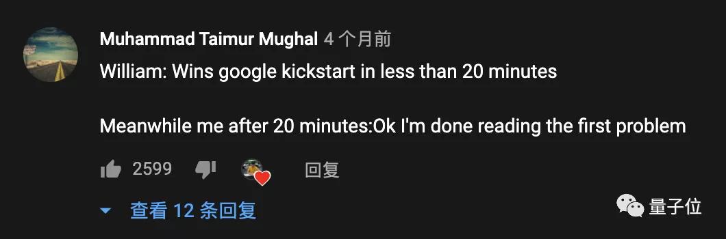 有网友看完这段视频后说:William可以在20分钟内解决Google的编程竞赛题,而我20分钟只够读懂题目。
