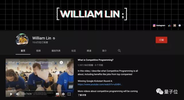 没错,和其他IOI选手不同,William Lin之前在网络上就已经小有名气,可以说是YouTube上的“网红”。