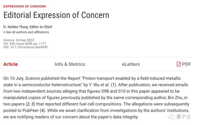 9月4日,Science发布“编辑关切”的声明,要求作者向读者披露具体的情况,并等待作者机构的调查澄清。