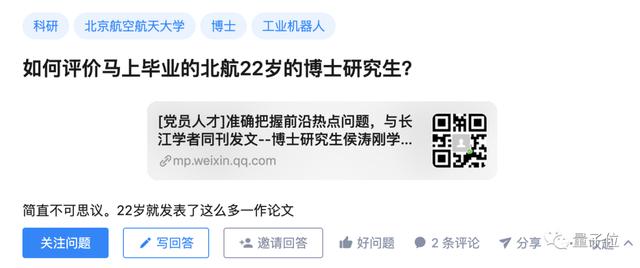 这种异于常人的“加速度”,让知乎上突然有一篇关于他的问题——「如何评价马上毕业的北航22岁博士研究生?」