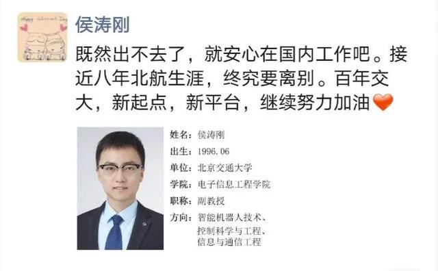 北京航空航天大学2020届博士毕业生侯涛刚,最近因为这条朋友圈火了。