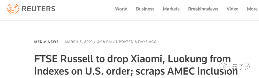 据路透社消息,富时罗素宣布,将小米集团等公司从全球指数中剔除,3月12日美股开盘生效。