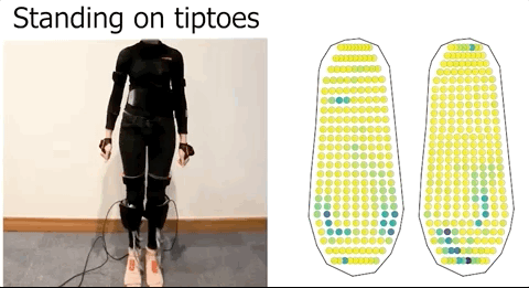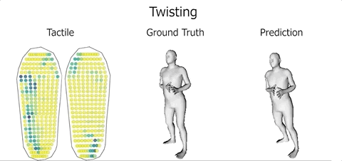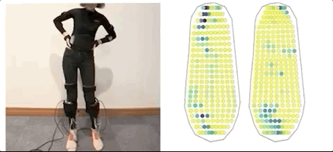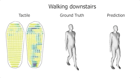 利用机器学习,将人体姿势、与触觉脚印关联起来,从而预测人体的运动。
