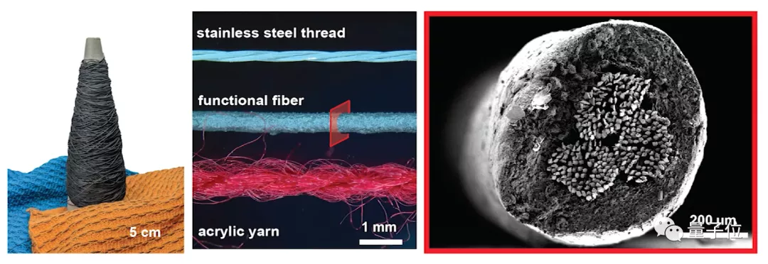 包括普通纺织纤维腈纶纱、与能够传感力度的功能性纤维。
