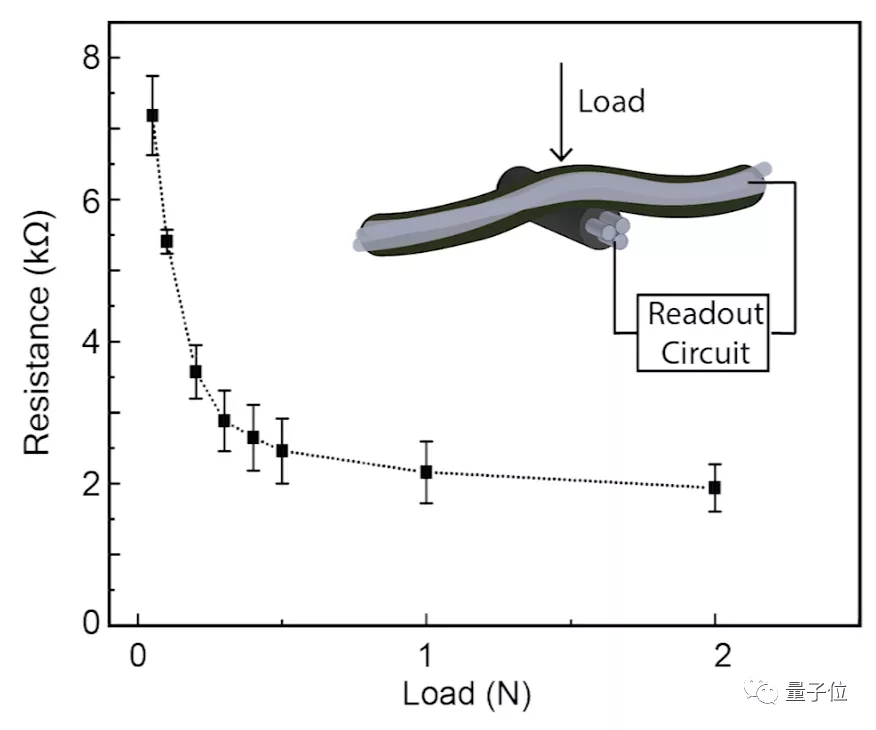 因此,当感知到负载压力的时候,两条线就会相互挤压,里面的传感材料就能通过交叉点,感知到力度的大小。