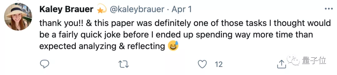最后,作者小姐姐自己也表示,这篇在愚人节当天发出的论文,本身其实并不严肃,只希望让大家会心一笑。