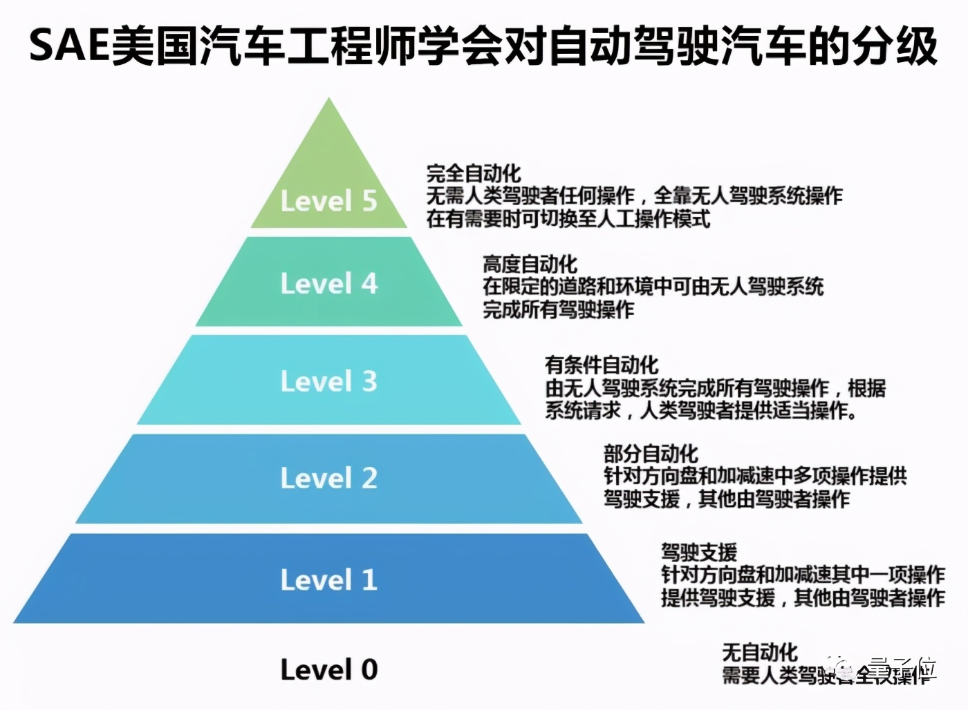 国内的车厂、供应商,目前仍然沿用美国SAE对自动驾驶的定义分级: