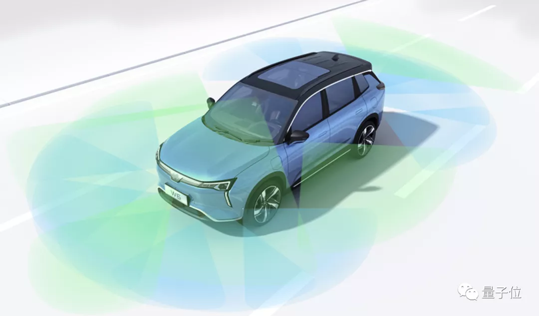 威马W6全车有5个77GHz毫米波雷达、2个前视摄像头、4个环视摄像头、12个超声波雷达。