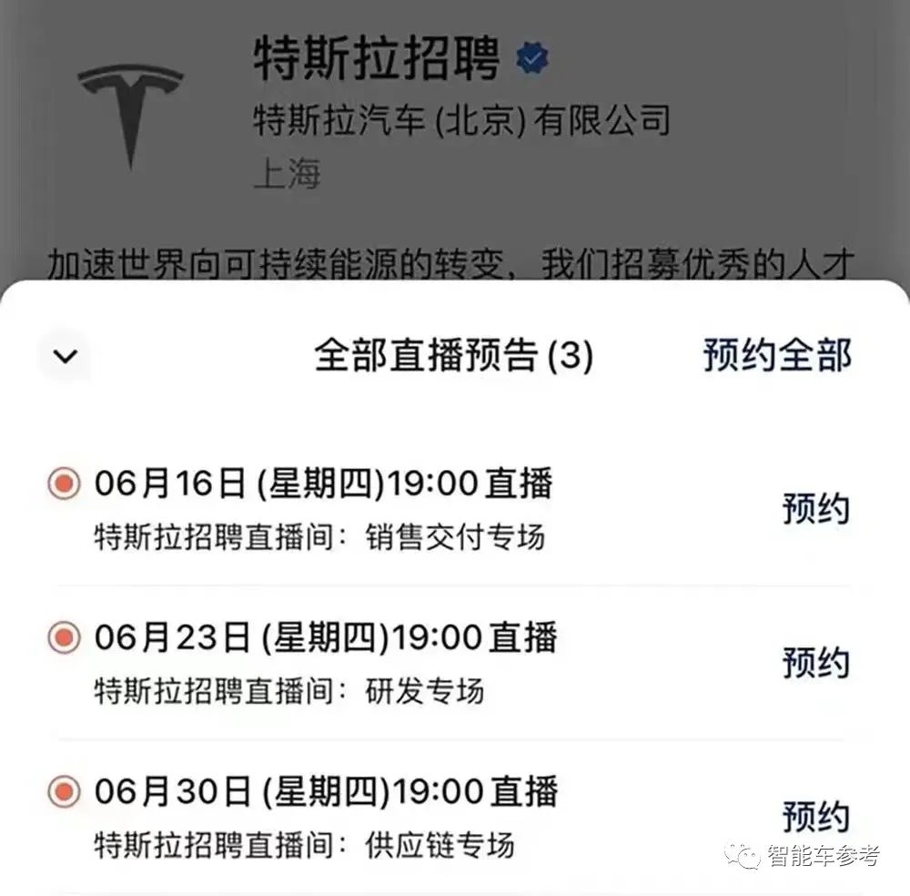 更早的一则消息是,特斯拉中国地区三场线上招聘会被临时取消,原因未知。