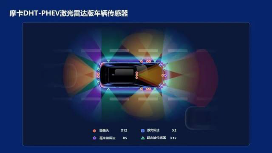 这套底层方案加持之下,摩卡激光雷达新车也做到了传感器方案上的豪华冗余:2颗125线激光雷达、5颗毫米波雷达、12颗超声波雷达、12颗高清摄像头等多达31个传感器。