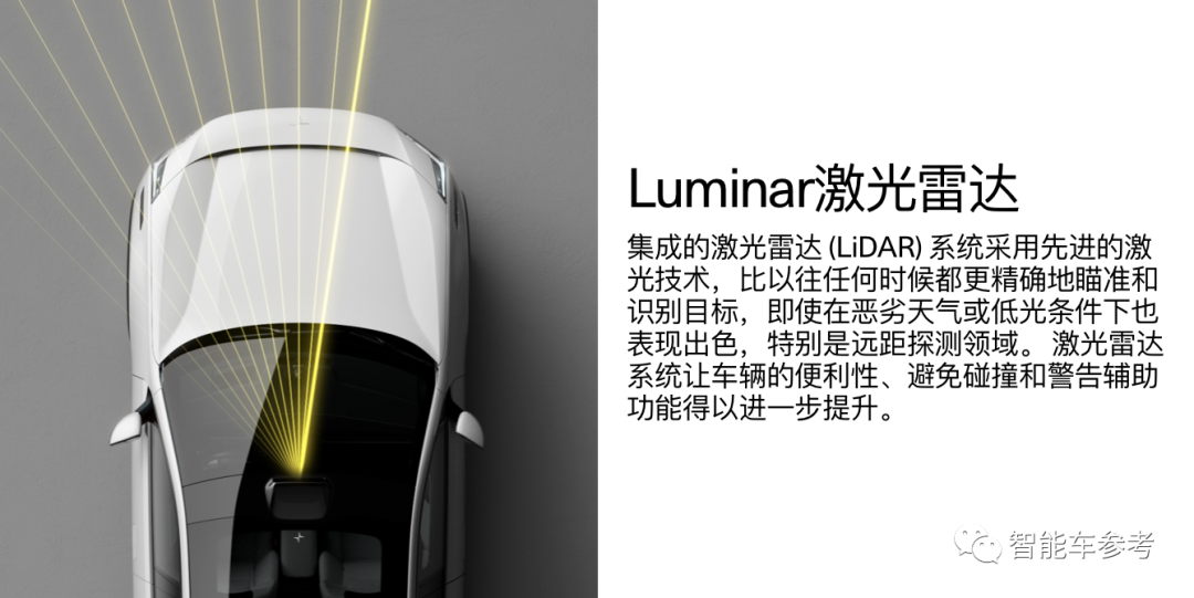 值得注意的是,带激光雷达的选装包,要到明年二季度才开放预定,其中包括一颗英伟达Orin芯片、Luminar公司提供的激光雷达、3个摄像头、4个超声波雷达,还能够对前后摄像头进行自动清洁。